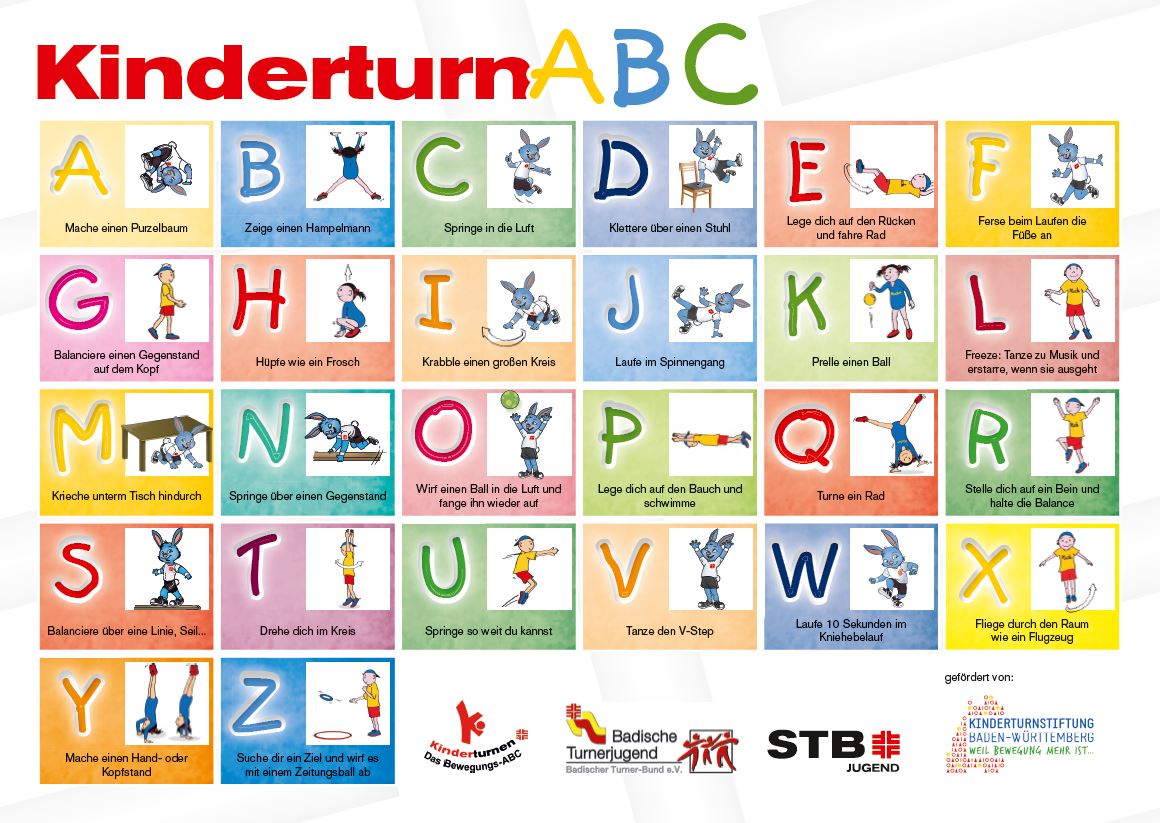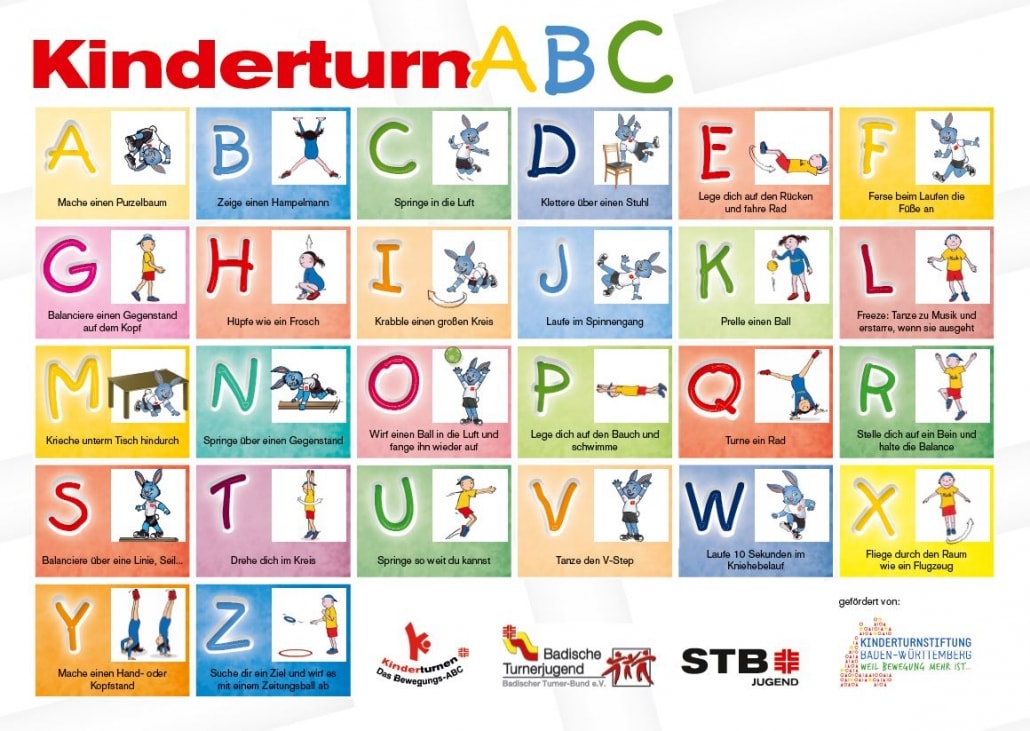 KinderturnABC, entwickelt vom schwäbischen und badischen Turner Bund zum „Tag des Kinderturnens“.