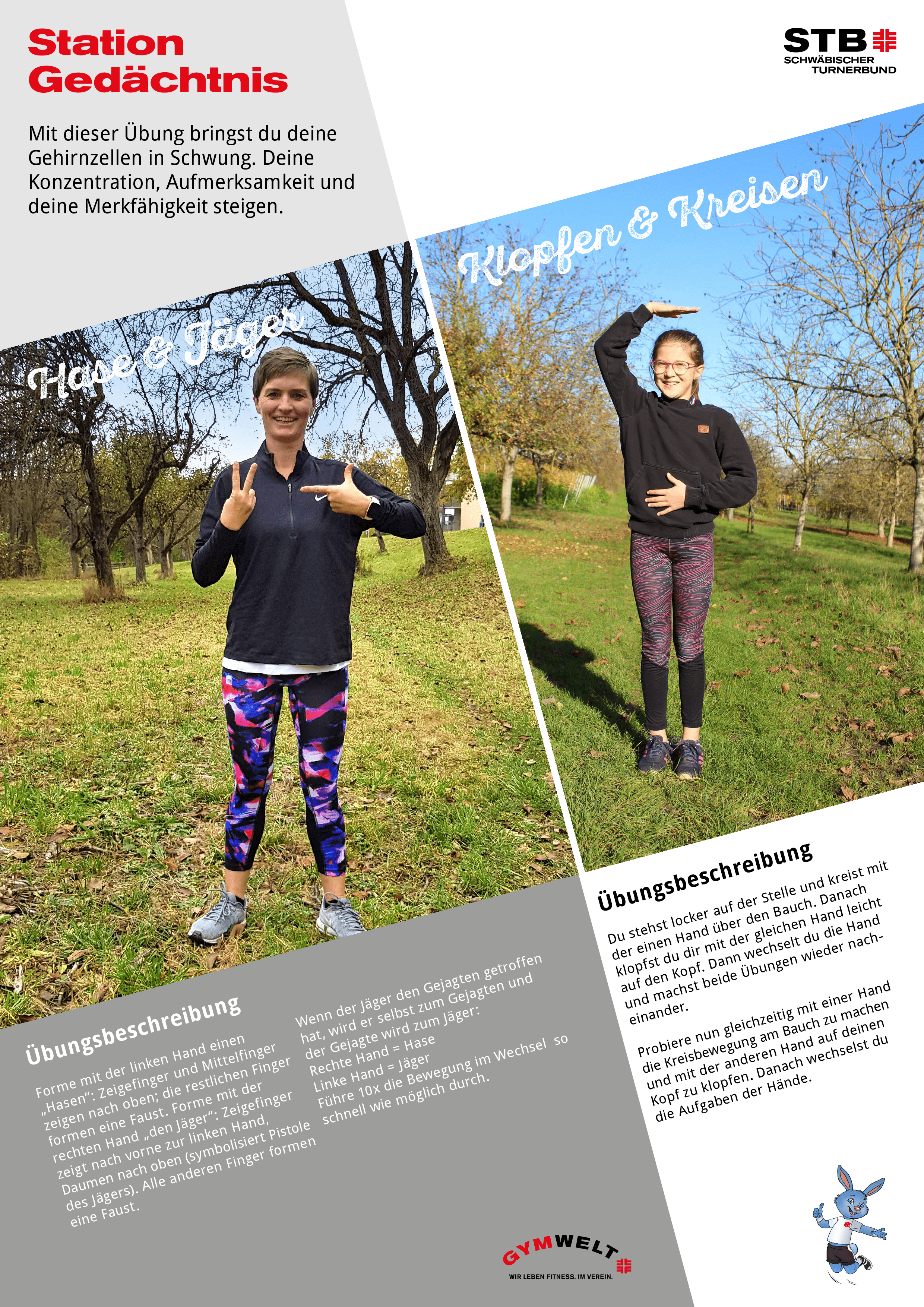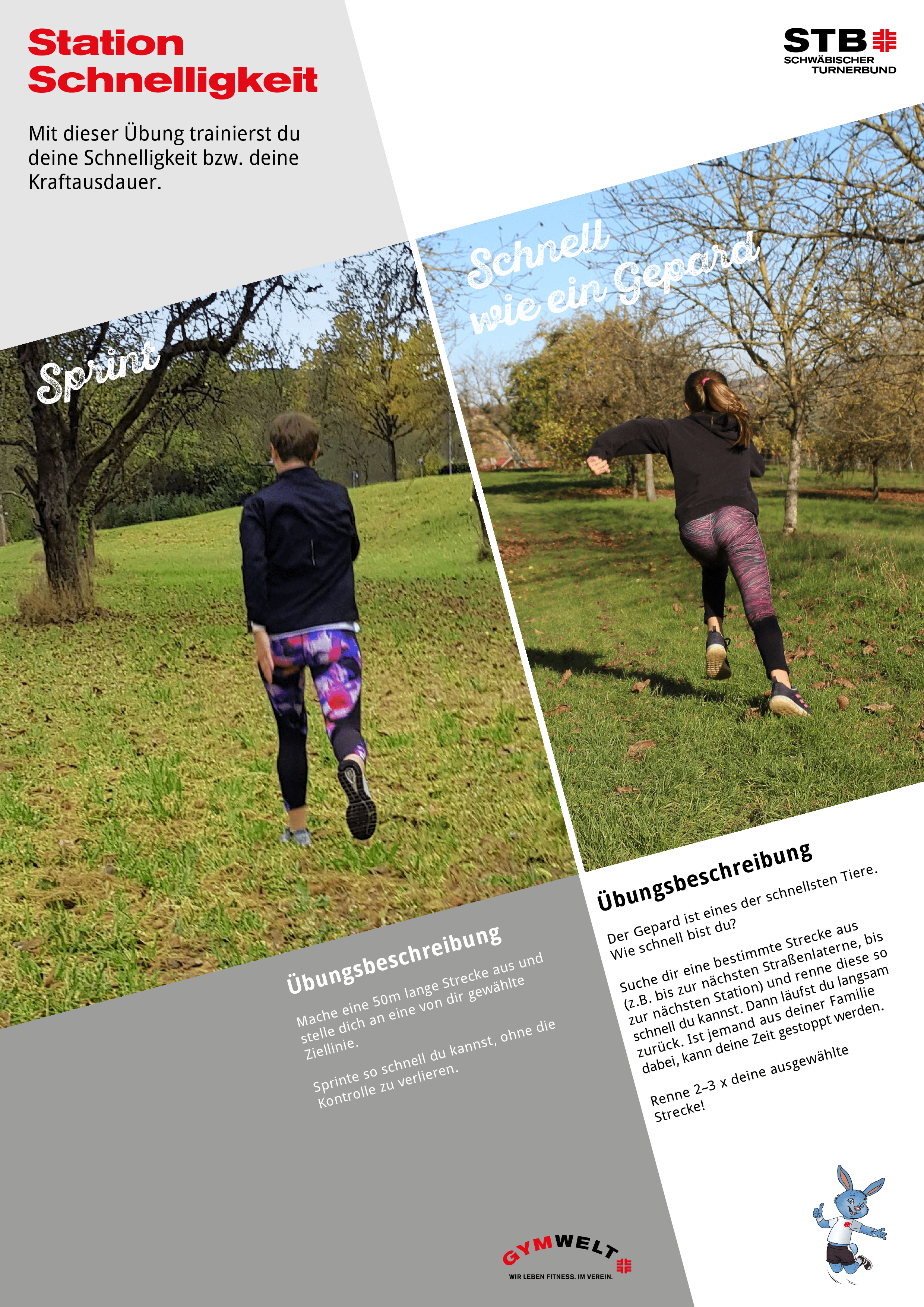 Bitte achtet zu jeder Zeit auf die Abstandsregelungen und die Kontaktbeschränkungen. Bitte organisiert keine Treffen mit anderen Familien oder Personen. Die Übungen sind nur als Individualsport möglich.