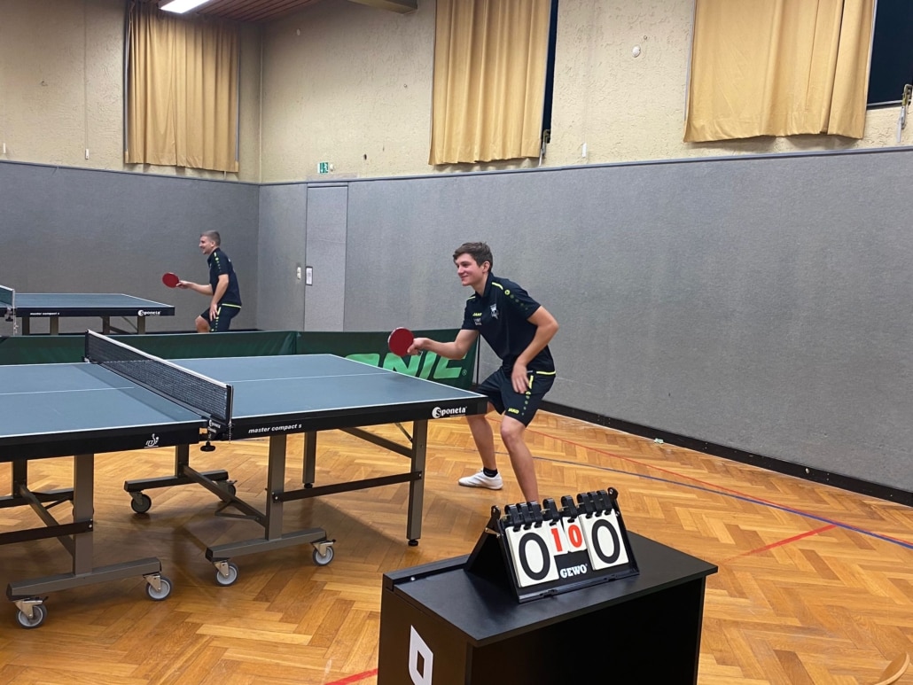 Nach dem Einspielen stellten sich die Mannschaften zur Begrüßung auf und es ging anschließend mit den ersten Matches wie folgt los: Kaum was zu bestellen hatten Maar / Stimm bei ihrem 0:3 gegen Baumann / Mack. Hin und her schaukelte die Begegnung zwischen Stimm / Stein und Prozuk / Guntovoj, bevor das 2:3 feststand. Eine unterm Strich sehr ausgeglichene Partie. Der finale Durchgang endete hierbei im Übrigen mit nur zwei Punkten Unterschied. Das Zwischenergebnis nach den Doppeln lautete derweil 0:2. Weiter ging es nun mit den Einzeln. Zwischenzeitlich konnte Tobias Maar zwar einen Satz für sich entscheiden, verlor die Partie gegen Elias Mack aber trotzdem klar mit 8:11, 11:7, 7:11, 6:11. Julian Stimm versäumte es mit einem 6:11, 11:8, 0:11, 5:11 gegen Lukas Baumann, einen Punkt für sein Team zu erspielen. Beachtenswert war hierbei insbesondere der Verlauf des dritten Satzes, als Stimm mit einem 0:11 überfahren wurde. Beim Stand von 0:4 ging es nun weiter, als das untere Paarkreuz die nächsten Spiele bestritt. Das Einzel zwischen Erwin Stimm und Jan Guntovoj, welches vor der Begegnung bereits als umkämpft eingeschätzt wurde, endete mit einem hart erarbeiteten Fünf-Satz-Erfolg für den Gastspieler. Eine unterm Strich sehr ausgeglichene Partie. Die gewinnbringende Taktik fehlte Oliver Stein bei seiner Drei-Satz-Niederlage gegen Juri Prozuk ab Ballwechsel 1. Das letzte Spiel führte somit im Ergebnis zum eindeutigen Endstand von 6:0.