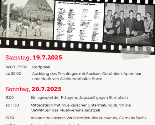 Aufgrund der Vorbereitungen für unsere Jubiläumsfeier am 19. und 20. Juli bleibt die Jagstaue diesen Freitag, den 18. Juli geschlossen.